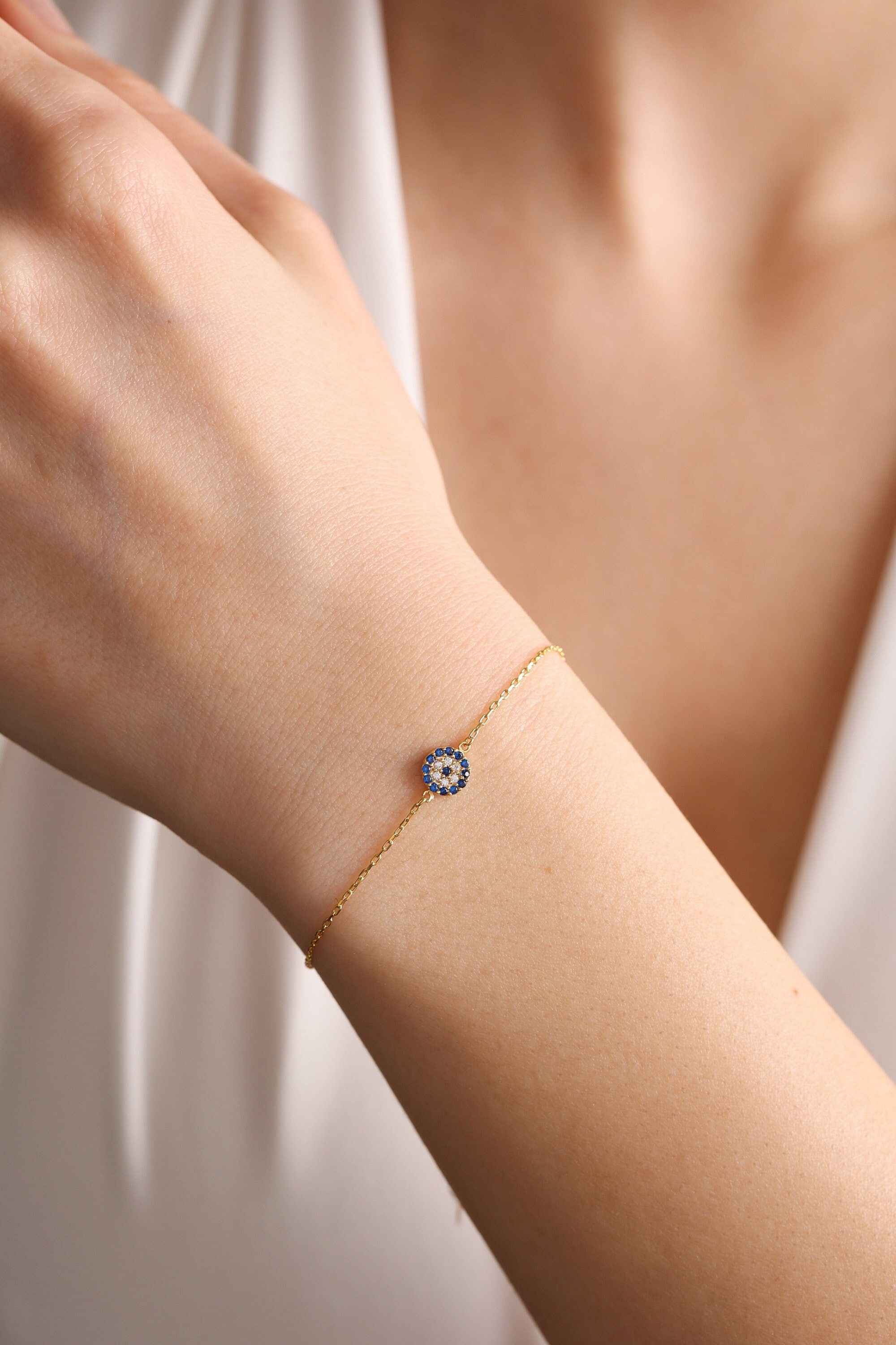 14k Solid Gpld Evil Eye Bracelet , Tiny Evil Eye Bracelet , Protection Bracelet , Gift for her , Mother bracelet , Mother gift ,Gift for mom